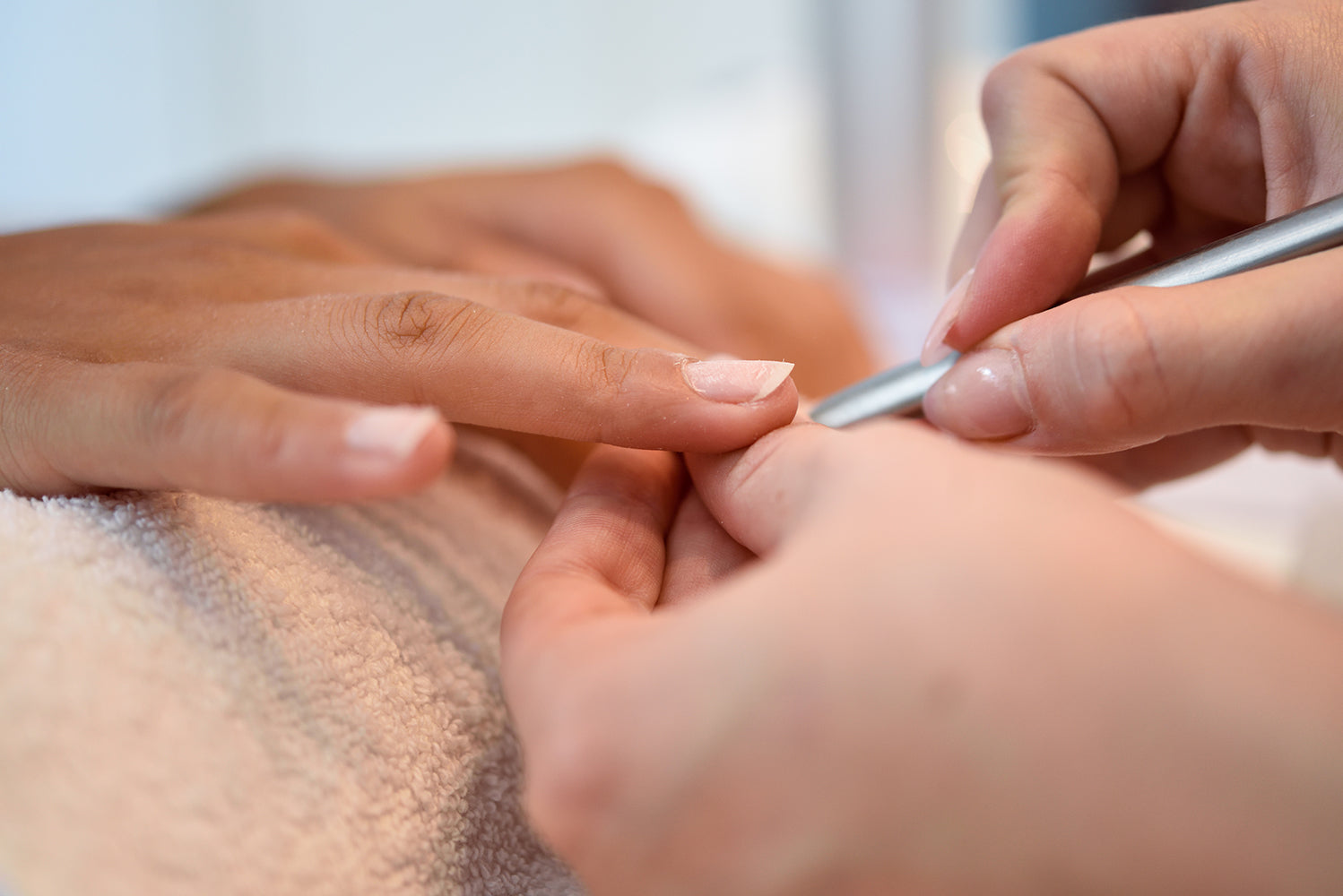 Lázeň, ošetření kůžičky, leštění nehtu, olej.